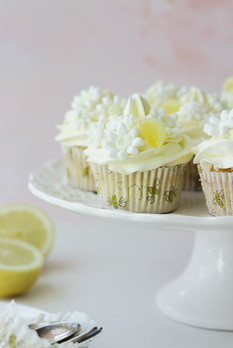 Light and fluffy cupcakes with a zingy and fresh lemon twist. I used both lemon zest and juice in the sponge, filled them with a tangy lemon curd and topped them with a light lemon buttercream.